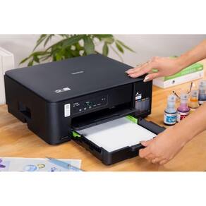 Oferece múltiplas opções de conectividade, incluindo Wi-Fi (2,4GHz e 5GHz), Wi-Fi Direct e USB 2.0, proporcionando maior flexibilidade de uso. A recarga do tanque de tinta é prática e segura, com o sistema de garrafas anti-derramamento da Brother, que evita erros de abastecimento e agiliza o processo.