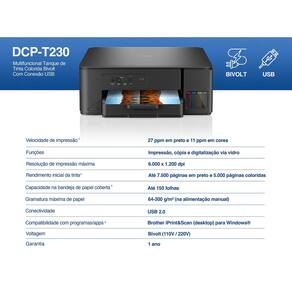 A impressora multifuncional Brother DCP-T230 T230 é a solução ideal para quem busca eficiência e versatilidade no ambiente de trabalho ou em casa. Com tecnologia de jato de tinta, este modelo permite realizar impressões em cores vibrantes, cópias e digitalizações com facilidade, atendendo a todas as suas necessidades administrativas e criativas.Sua interface USB torna a conexão simples e prática, permitindo a integração com diversos dispositivos. Apesar de não contar com Wi-Fi, sua confiabilidade e desempenho garantem que você possa realizar suas tarefas sem interrupções, tornando-a perfeita para uso diário.Classificada como eficiente em termos de consumo energético, a DCP-T230 também contribui para a sustentabilidade, reduzindo o impacto ambiental. A marca Brother é reconhecida pela qualidade de seus produtos, proporcionando inovações que fazem a diferença no dia a dia dos usuários, sejam eles profissionais ou estudantes.Marca: BrotherModelo: T230Cor: PretoConteúdo da Embalagem:1x Impressora Multifuncional Brother Dcp-t230 T230 Colors JatoGarantia de 1 ano de fábrica.