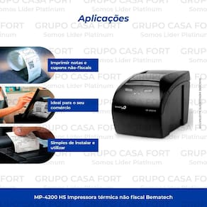 Conectividade e compatibilidade Esse modelo conta com 3 interfaces de comunicação: usb, serial e ethernet. Além disso, a impressora bematech mp-4200 hs é 100% compatível com os modelos i8 e i9 e pronta para trabalhar com os principais softwares de automação comercial.