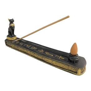 Incensário Bastet Anúbis Tutankamon Isis 24cm - Escolha Seu Cor: Bastet Preto e Dourado Incensário Egípcio Canaleta 24 cm Preto e Dourado em Resina - Escolha entre os modelos disponíveis no anúncio: