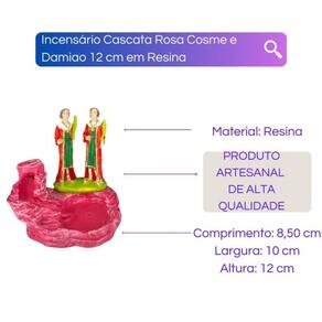 Incensário Cascata Católico em Resina - Escolha o seu Santo Cor: Rosa Cosme e Damião 10 cm Incensário Cascata Católico em Resina - Escolha o seu Santo