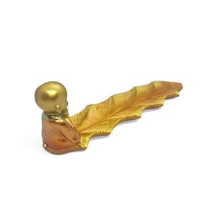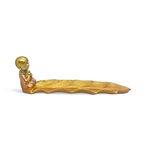 Lindo Incensário importado em resina. Pode ser utilizado com incenso de vareta e com velas aromáticas. Possui inscrições de Buda, pintura artesanal de alta qualidade e um dourado brilhante, remetendo às riquezas do ouro.