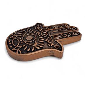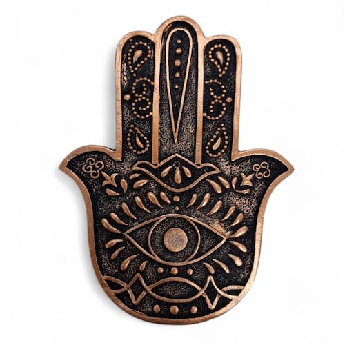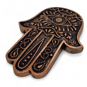 Lindo incensário em resina com a Mão Hamsá utilizado popularmente não só como um amuleto contra o mau olhado, mas também para afastar as energias negativas e trazer felicidade, sorte e fortuna. Além de incensário é uma peça decorativa belíssima, rica em detalhes, pintura impecável, que vai adicionar charme ao ambientes.