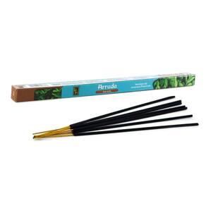 Incenso com 25 Caixas Arruda Incenso Arruda 25 Caixinhas\n- Ideal para aromatizar templos, lares, escritórios e muitos outros ambientes.\n- Servem para aromatizar, energizar e transmutar energias, atuando como purificadores e condutores que combatem as vibrações negativas, e proporcionam a harmonização e paz no ambiente.\n- Composição: Carvão, fragrância, pó de madeira, resina vegetal e vareta de bambu\n- Itens Inclusos: 25 caixinhas com 7 incensos cada\n- Tamanho: 26,5x8,5\n- Cor: Arruda\nEspecificações:\nMarca : BARUFE\nTipo de material : Carvão, fragrância, pó de madeira, resina vegetal e vareta de bambu\nCores ou Estampa : Preto\nDimensões do Produto : 26,5 X 8 X 8 CM\nDimensões da Embalagem : 26,5 X 8 X 8 CM\nPeso Bruto (Gramas) : 0.436 Marca: Não Informado