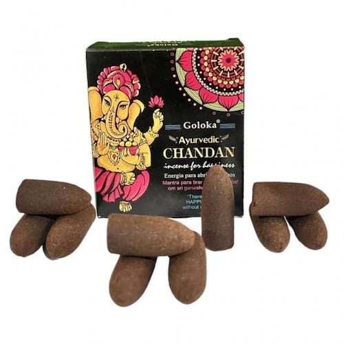 Incenso Cone Cascata Goloka Back Flow - Selecione o Aroma Cor: Ganesha Chandan Incenso Cone Cascata Goloka Back Flow - Selecione o Aromax000D Conteúdo da embalagem: uma caixinha com 10 incensos cones tradicional.x000d Fabricação em massala - origem: Índia.x000d x000d Escolha um Aroma disponíveis na opção COR do próprio anúncio.x000d x000d Caixinha contém 10 cones refluxox000D x000d Composição: carvão aglutinante, varetas de bambu, óleo aromático de sândalo e essências.x000d x000d Como usar: x000D Mantenha o incensário afastado de correntes de ar ou vento se não a fumaça não irá se movimentar corretamente.x000d Acenda a ponta do incenso goloka até ele ficar avermelhado em brasa e a fumaça sair por baixo do incenso.x000d Após isso coloque o incenso no incensário e ele queimará por até 20 minutos.x000d x000d Enviamos o seu produto em até 24 horas após a confirmação de pagamentox000D x000d Caso tenha alguma dúvida nos mande mensagem que respondemos rapidinho para te ajudar da melhor forma possível Marca: Bialluz