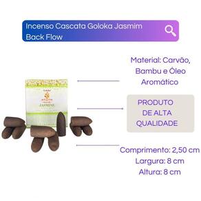 Incenso Cone Cascata Goloka Back Flow - Selecione o Aroma Cor: Jasmim Back Flow Incenso Cone Cascata Goloka Back Flow - Selecione o Aromax000D Conteúdo da embalagem: uma caixinha com 10 incensos cones tradicional.x000d Fabricação em massala - origem: Índia.x000d x000d Escolha um Aroma disponíveis na opção COR do próprio anúncio.x000d x000d Caixinha contém 10 cones refluxox000D x000d Composição: carvão aglutinante, varetas de bambu, óleo aromático de sândalo e essências.x000d x000d Como usar: x000D Mantenha o incensário afastado de correntes de ar ou vento se não a fumaça não irá se movimentar corretamente.x000d Acenda a ponta do incenso goloka até ele ficar avermelhado em brasa e a fumaça sair por baixo do incenso.x000d Após isso coloque o incenso no incensário e ele queimará por até 20 minutos.x000d x000d Enviamos o seu produto em até 24 horas após a confirmação de pagamentox000D x000d Caso tenha alguma dúvida nos mande mensagem que respondemos rapidinho para te ajudar da melhor forma possível Marca: Bialluz