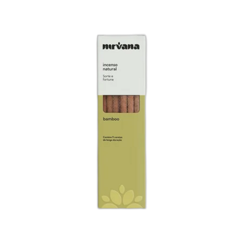 Bamboo: Sorte e Fortuna >> No incenso Nirvana Bamboo, toques amadeirados, florais e cítricos se misturam para criar uma fragrância alegre e refrescante. Alegre e intenso, proporciona sensação de bem-estar e harmonia. Tem o poder de transmutar energias, ativando as energias estagnadas. Composição: (mix de resinas naturais, ervas, óleos essenciais e especiarias), varetas de bambu, essência e aglutinante. Modo de uso: Fixe o incenso em local apropriado e acenda a ponta, espere alguns segundos e apague a chama, deixando queimar em brasa. Produzido no Brasil. Contém: 09 varetas. *Imagem meramente ilustrativa. Produto não acompanha porta incenso ou incensário.
