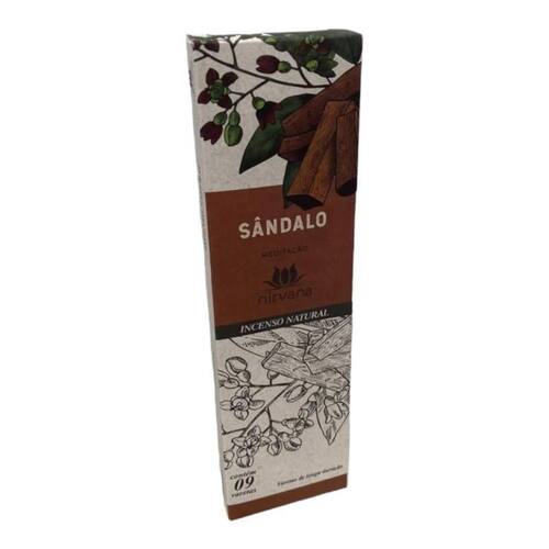 Incenso Nirvana Natural Caixa com 9 Varetas- Escolha o Aroma Cor: Natural Sândalo Incenso Nirvana Natural Caixa com 9 Varetas- Escolha o Aromax000D x000d x000d Escolha um Aroma disponíveis na opção COR do próprio anúncio.x000d x000d Detalhes Técnico: Peso Total de cada caixa:45 gramasx000D Quantidade Total de varetas em cada Caixa: 9 varetas aproximadamente.x000d Produto Nacional.x000d Tempo de queima aproximadamente de cada vareta 60 min.x000d x000d Enviamos o seu pedido em até 24 horas após a confirmação de pagamentox000D x000d Medidas da caixa:x000D Comprimento: 21,5 cmx000D Largura: 6 cmx000D Altura: 1,5 cmx000D x000d Composição: Varetas de bambu, carvão aditivado, resinas vegetais e ervas aromáticas.x000d x000d Caso tenha alguma dúvida nos mande mensagem que respondemos rapidinho para te ajudar da melhor forma possível Marca: Bialluz