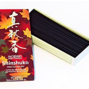 Incenso Shinshuko Sem Fumaça. O senkô é um incenso em forma de bastão muito utilizado no oriente, em especial no Japão, em rituais religiosos de purificação e também como oferenda em cerimônias budistas. O incenso budista foi introduzido nestas cerimônias, pois propicia um ambiente adequado à prece e meditação. Composição: Pó de madeira, pó de carvão vegetal, aglutinante, corante, cargas, fragrância e veículo. Cor do incenso: preto Quantidade: 160 bastonetes Peso líquido: 90g Medida da caixa: 14,8 x 6,0 x 2,2 cm Comprimento: 13,5 cm Tempo de queima: 30 minutos Peso: 90g. Fabricante: Barão Kôbo. Origem: Brasil. Marca: Barão Kôbo