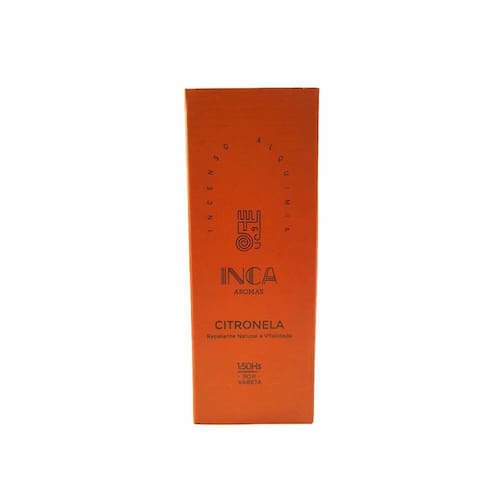 h2incenso Terapêutico Citronela Inca Aromas /h2pA citronela é uma planta nativa da Ásia, além de funcionar como um ótimo repelente natural, seu poder alquímico traz uma sensação de limpeza, energia de purificação e vitalidade para dentro do lar./ppincenso 100% Natural, Artesanal e Terapêutico. Não é tóxico./ppcaixa com 9 varetas. Cada vareta queima aproximadamente por 110 min./ppcomposição: Breu-branco, carvão vegetal, olíbano, sal grosso e óleo concentrado aromático de citronela./p