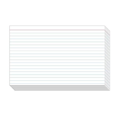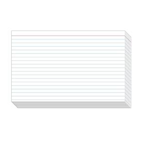 As fichas pautadas são pautadas em um lado para facilitar a anotação. O design oferece estoque comercial de alta qualidade para maior durabilidade e desempenho. Em capa branca grossa e pesada de 100 libras. O tamanho de 4" x 6" e 3" x 5" é versátil o suficiente para estudar, apresentar e fazer listas. Há 100 cartas brancas por pacote.