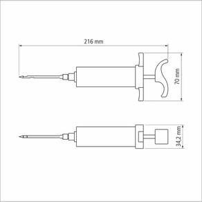 Corpo de acrílico e polipropileno que permite visualizar o conteúdo no interior. Ponta injetora e haste de aço inox com maior resistência e durabilidade. Capacidade de 30 ml.