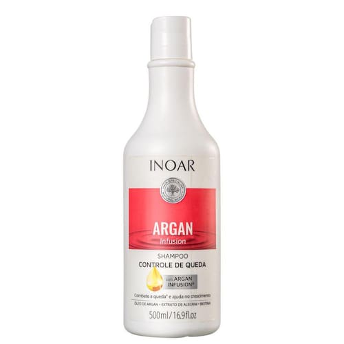 Shampoo Inoar Argan Infusion Controle de Queda une o poder hidratante do óleo de argan com ativos especiais para incentivar o couro cabeludo e incentivar o crescimento. Possui pH balanceado e pouca concentração de sulfatos, o que o torna perfeito para o uso diário.