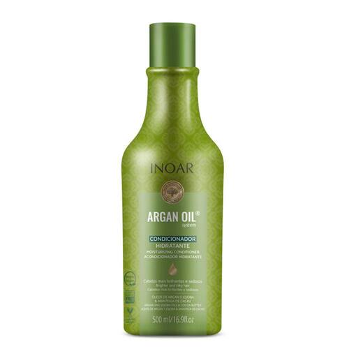 INOAR ARGAN OIL SYSTEM CONDICIONADOR 500ml Inoar Argan Oil System - Condicionador 500ml Condicionador para todos os tipos de cabelo. Inoar Argan Oil System Condicionador dá resistência aos fios danificados e recupera a beleza. Perfeito para o cabelo ressecado ou tratados quimicamente Com o poder do óleo de argan, Inoar Argan Oil System Condicionador consegue reparar a fibra capilar e recompor a proteína do cabelo para dar mais força e devolver a saúde. Ainda controla o volume e o movimento saudável. Ação: Complexo com Óleo de Argan rico em Ácido Linóico, Ácido Oleico Ômega 9, Ácido Linolíco Ômega-6, Vitamina E e Polifenóis: impedem a ação oxidante de radicais livres e selam as cutículas, proporcionando aquele brilho maravilhoso e saudável. Diminui a agressão causada por tratamentos químicos e é um poderoso hidratante. Complexo de Queratina, Macadâmia e Proteínas do Trigo: proporciona ação condicionante aos fios, sem ressecá-los, dando-lhes maior naturalidade.