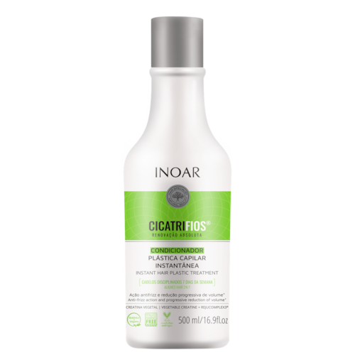 Condicionador plástica capilar instantânea. Inoar Cicatrifios proporciona um cabelo selado, nutrido, com brilho extremo, de fácil escovação e efeitos duradouros.