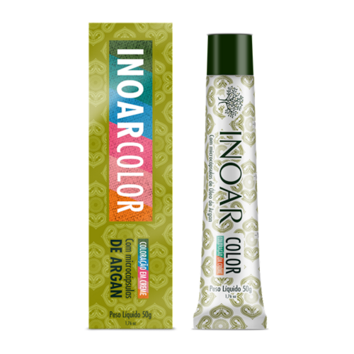 Inoar Color Coloração em Creme, possui microcápsulas visíveis de Argan e ativos tecnológicos que conferem hidratação e proteção à fibra capilar durante o procedimento químico.
