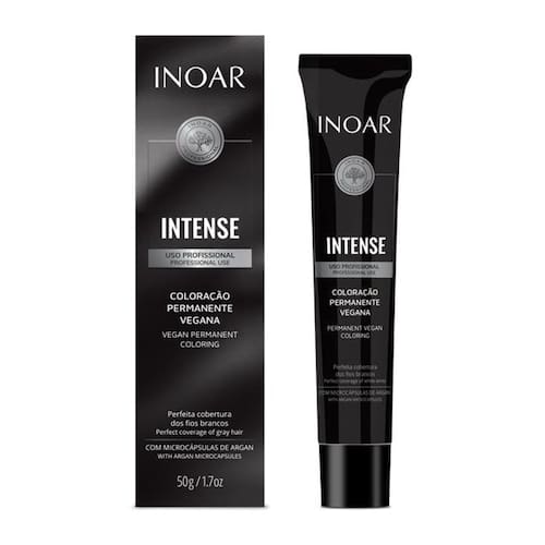 A Coloração Inoar Intense conta com microcápsulas de Óleo de Argan que proporcionam hidratação e brilho intensos, fios mais luminosos e naturais. Com um sistema de coloração seletiva, a tintura garante uma cobertura uniforme, cor intensa, bem definida e duradoura.Seus fios bonitos e com brilho por muito mais tempo. Além disso, todas as nuances da linha Inoar Intense podem ser misturadas entre si, para cores exclusivas. Cabelos saudáveis e com a cor perfeita.