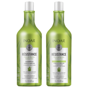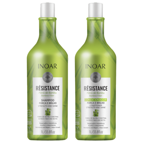 Kit Inoar Résistance Fibra de Bambu Salon Duo fortalece e melhora o brilho dos fios, além de ajudar no crescimento saudável.