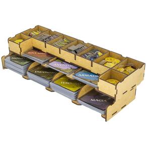 Os módulos três e quatro são os organizadores de cartas e marcadores. Duas bandejas que podem ser utilizadas separadamente ou sobrepostas que comportam cada um dos baralhos de jogo e os principais marcadores. As bandejas de cartas possuem ângulo para que as cartas fiquem ligeiramente inclinadas, facilitando a compra. As travas para sobreposição das bandejas permitem que ambas fiquem com acesso fácil, sem tomar muito espaço na mesa.
