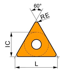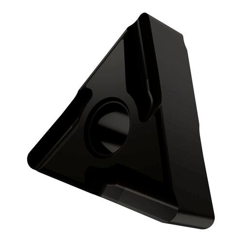 Inserto de torneamento dupla face negativo, triangular com diâmetro circunscrito de 9.525mm, 4.76mm espessurra, raio de ponta, 0.4mm precisão de indexação de acordo com a classe de tolerância ISO M, quebra-cavaco SI com arestas de corte redondas, na classe T9325, um revestimento MT-CVD metal duro WC-Co gradiente funcional dentro do parâmetro ISO P15-P35 e M10-M30, para médio para pesado usinagem de aços e aços inoxidáveis com uma ferramenta de torneamento direita