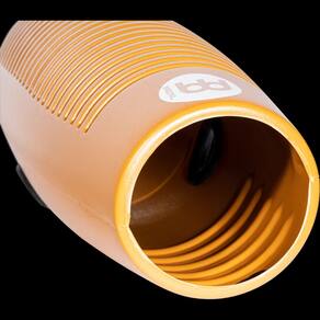 A construção sintética rígida produz um som de güiro brilhante e cortante. Também é extremamente durável e não é afetado pela umidade ou pelo clima diferente dos materiais naturais que obtêm um som mais maçante em clima úmido. Três superfícies de toque. Anéis de borracha para conforto ao segurar.
