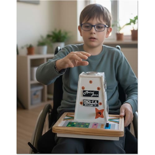 O Musical-beam-05 é um controlador MIDI com sensores de distância, desenvolvido para gerar notas e comandos MIDI por movimento, sem necessidade de toque físico. Indicado para uso musical e educacional em atividades interativas, com operação configurável conforme o software utilizado.
