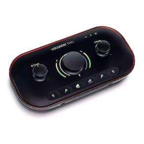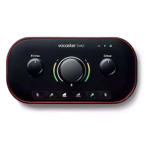 Interface de Áudio Focusrite Vocaster Two Com Bluetooth Participe da conversa Como você consegue o som de broadcast que seu podcast merece A resposta nunca foi tão clara. Obtenha um som incrível com ganho mais que suficiente para qualquer microfone XLR - para você e um convidado. Capture a conversa no estúdio, por telefone ou on-line. Defina níveis, melhore seu som com um clique e destaque-se com o Vocaster Two em segundos. Obtenha o som profissional do seu podcast com Auto Gain, Enhance, dois conectores de microfone e dois de fone de ouvido, áudio Bluetooth do seu telefone e muito mais.