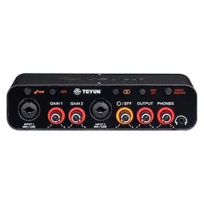 Interface de Audio Teyun Q26 USB Descrição A interface de áudio -26 é a escolha ideal para quem busca gravação com qualidade de estúdio em qualquer lugar. Com suporte a áudio de até 32 bits/384kHz, essa placa oferece fidelidade sonora impecável para músicos, produtores, podcasters, streamers e criadores de conteúdo. Seu sistema DSP com efeito de reverberação integrado garante sons mais encorpados e prontos para produção, enquanto o pré-amplificador D-PRE permite capturar cada detalhe da voz ou instrumento com clareza e baixo ruído. Compatível com Windows, macOS e dispositivos iOS via OTG , a -26 conta com entrada de microfone balanceada, entradas Hi-Z e de linha, saída para fones e conexão USB 2.0 de alta velocidade. É totalmente plug and play e acompanha monitoramento direto sem latência, ideal para gravações precisas em tempo real. O design robusto e portátil, somado ao suporte a alimentação por USB Tipo A ou Type-C backup , garante flexibilidade total em qualquer setup - do home studio ao palco. Especificações Técnicas - Conversor AD/DA: 16/24/32 bits - Taxas de amostragem: 44,1kHz / 48kHz / 96kHz / 192kHz / 384kHz - Tecnologia de conectividade: USB 2.0 de alta velocidade - Canais: 2 - Entrada de microfone 1-2 balanceada : - Resposta de frequência: 20Hz-20kHz -1dB - Faixa dinâmica: 82dB - Distorção + ruído: 0,03% 1kHz - Nível máx. De entrada: +6dBu - Impedância de entrada: 10kO - Faixa de ganho: +3dB a +60dB - Entrada Hi-Z 1 desequilibrada : - Nível máx. De entrada: +3,0dBV - Impedância de entrada: 10kO - Faixa de ganho: 0dB a +40dB - Entrada de linha desequilibrada : - Nível máx. De entrada: +10dBu - Impedância de entrada: 10kO - Faixa de ganho: -10dB a +40dB - Saída principal balanceada: - Resposta de frequência: 20Hz-20kHz -1dB -faixa dinâmica: 82dB - Distorção + ruído: 0,03% 1kHz - Nível máx. De saída: +6dBu - Saída para fone de ouvido: - Impedância de saída: 16O - Potência máx. De saída: 15mW + 15mW a 400O - Requisitos de energia: 5W via USB - Compatibilidade: Windows, macOS, iOS com adaptador OTG Dimensões e Peso - Comprimento: 23 cm - Largura: 13 cm - Altura: 7 cm - Peso: 700 g Itens Inclusos - Interface de áudio -26 - Cabo USB de conexão : 3 meses de pelo fabricante. Origem: China Imagens meramente ilustrativas, podendo haver variação de cor Marca: Não Informado Ean: 4713387367913