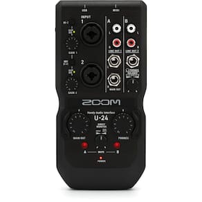 - Interface de áudio USB portátil de 24 bits/96 kHz e 2 canais com 2 pré-amplificadores
