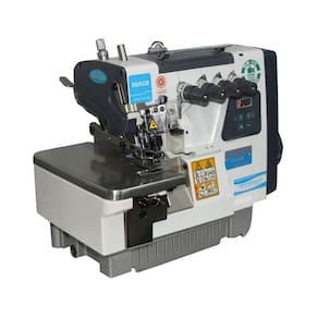 Interlock bitola larga (pesada) com motor posicionador, Direct-Drive (central eletrônica embutida). Velocidade de 6000 ppm. Bitola de 5mm+6mm de chuleado=largura total de 11mm. Certificação NR-12. Acompanha bancada com rodinhas.Funções