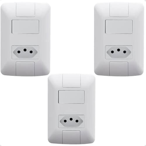 Produto: conjunto 4x2 com 1 simples 6 a 250 v e 1 tomada 2p+t 10 a 250 v tramontina aria branco 3 unidades Cód. 57241064 Utilize o conjunto 4x2 com 1 simples 6 a 250 v e 1 tomada 2p+t 10 a 250 v tramontina aria branco e tenha um item completo para ligar equipamentos elétricos e eletrônicos e ainda acender as luzes do ambiente. Produzido em termoplástico com acabamento brilho na cor branca, ele possui sistema modular com o suporte incorporado e furo oblongo que facilita a fixação e a regulagem da placa à parede, deixando-a reta; além disso, sua instalação não fica aparente, o que deixa seu cômodo ainda mais bonito. Um item ideal para sua casa, que acompanha suporte e parafusos para a instalação Informações gerais Recomendações de uso A instalação e segurança: é importante que o produto seja instalado por habilitado. Antes de instalar, desligue a energia elétrica. Certificação: produtos certificados conforme portarias do inmetro n 85/2006 e 234/2008, ocp-0004, tv rheinland, segurança, compulsório. Peso: 0,06 kg : 10 anos 90 dias de legal acrescidos de 09 anos e 09 meses de contratual para vícios ou defeitos de fabricação. Dimensões: 8cmx12cm Obrigado por visitar nosso produto Marca: Não Informado