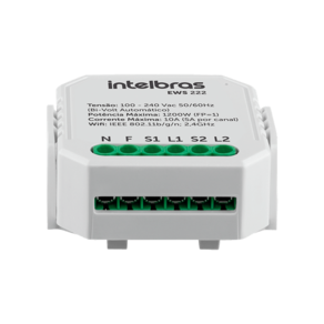 O Interruptor Controlador de Cargas Wifi 2/2 EWS 222 é utilizado no acionamento de equipamentos como lâmpadas, ventiladores, abajures e persianas através de aplicativo. O EWS 222, possuí duas sáidas e diferente de outros controladores, possibilita que um interruptor seja integrado a automação, de forma que o controlador e o interruptor estejam sempre se conversando, ou seja, sempre é possível controlar a carga por aplicativo independente da posição do interruptor, da mesma forma que o interruptor sempre acionará a carga quando trocado de posição. Além disso, ele permite que o usuário acione, controle e automatize ambientes residenciais e comerciais através do aplicativo IZY Smart, de maneira fácil e inteligente. O produto alia características de praticidade, economia de energia e segurança
