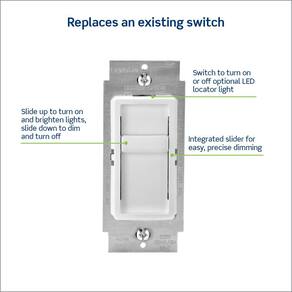 Leviton Interruptor de regulação de intensidade de luz SureSlide para lâmpadas LED reguláveis, halogêneo e incandescente, 6672-1LW, branco