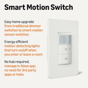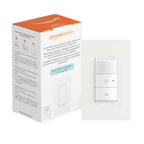 Amazon Basics Interruptor com sensor de movimento inteligente, polo único, funciona apenas com Alexa, Wi-Fi de 2,4 GHz, sem necessidade de hub, 1 pacote, branco - Atualização inteligente: funciona com Alexa para adicionar controle de voz à sua casa; atualize dos interruptores tradicionais de dimmer de polo único para interruptores de movimento inteligentes com recursos de escurecimento - Detecção de movimento: acende automaticamente a luz quando o movimento é detectado e desliga após um tempo predefinido criando rotinas no aplicativo Alexa - Controle de qualquer lugar: controle e ajuste as configurações de movimento de qualquer lugar usando o aplicativo Alexa - Compatibilidade: requer fios neutros e Wi-Fi de 2,4 GHz - Não é necessário nenhum aplicativo ou hub de terceiros: configure e gerencie dispositivos conectados diretamente no aplicativo Alexa; não há necessidade de hubs inteligentes adicionais ou aplicativos de terceiros; compatível apenas com Alexa - INSTALAÇÃO GUIADA: Siga as orientações passo a passo no manual do usuário para configurar seu interruptor