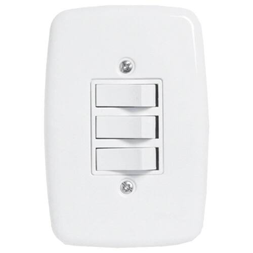 Características do produto: Cor da placa e tecla: Branco Cor do corpo: Branco Marca: Pluzie Modelo: Interruptor Ideale Pluzie 3 Teclas Simples Com Placa 4x2 Branca