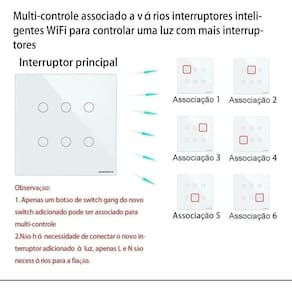 Para tornar o seu dia a dia mais versátil, adquira os interruptores touch Wi-Fi. - Comando de Voz: Mãos livres para gerenciar seus dispositivos através de comandos de voz. Compatível com Google Home e Alexa da Amazon. - Agendamentos: Defina os horários de funcionamento desejados. - Compartilhamento: Compartilhe o controle com os membros da sua família, para aproveitar todos os recursos juntos. - Controle pelo App: SmartLife ou NovaDigital. Características do Produto: Aviso Sobre o Produto: Imagem ilustrativa. Tipo: Inteligente Touch Wi-Fi 4x4 6 Botões Voltagem: 100 240V AC. Corrente Máx: 10A. Padrão Wi-Fi: IEEE 802.11 b / g / n. Frequência: 2,4GHz Compatibilidade: Android e iOS. App do Produto: SmartLife ou NovaDigital Material utilizado na Fabricação: Plástico ABS, Metal e Circuito eletrônico. Botões disponível: 6 Disponível na Cor: Branca Fabricado na China. Conteúdo da Embalagem 1 Touch Wi-Fi 4x4 6 Botões 1 manual 2 parafusos Homologação Anatel: 060792000160 Ean: 4064222594491