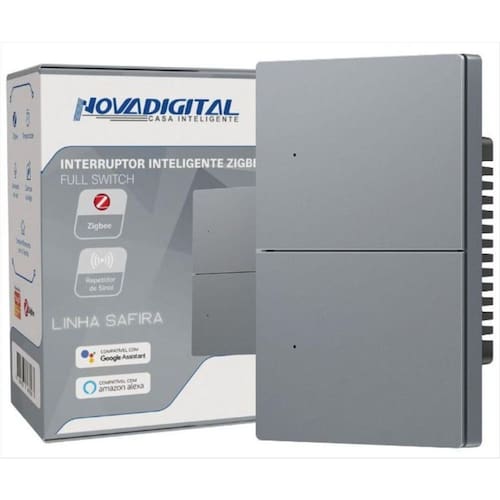Inteligente NovaDigital 2 Teclas Físicas Zigbee Inteligente 2 Teclas Física Zigbee Full Switch Safira NovaDigital Solução de Iluminação Inteligente para sua Casa Os Interruptores Inteligentes da NovaDigital, com 2 teclas físicas, são a escolha perfeita para quem busca automação residencial de alta qualidade e praticidade. Além de oferecerem um design moderno e elegante, esses interruptores contam com a avançada tecnologia Zigbee Full Switch, que permite o controle total da iluminação e ainda atuam como repetidores de sinal, garantindo uma conexão estável em todos os cantos da sua casa. Diferenciais e Mais sobre o Produto: inteligente com 2 teclas físicas para facilitar o controle das luzes. Tecnologia Zigbee que proporciona integração completa com diferentes dispositivos. Funciona como repetidor de sinal, ampliando a cobertura da rede sem fio. Design sofisticado na cor Safira, se adaptando a diferentes estilos de decoração. Facilidade de instalação e configuração, sem a necessidade de grandes mudanças na infraestrutura elétrica. Dicas de Uso: Para usufruir ao máximo dos benefícios desse inteligente, utilize a compatibilidade com assistentes de voz para controlar as luzes por comando de voz. Além disso, programe horários específicos para ligar e desligar as luzes, contribuindo para a economia de energia e a segurança da sua residência. Ficha Técnica: Marca: NovaDigital Modelo: Inteligente 2 Teclas Física Zigbee Full Switch Safira Tecnologia: Zigbee Mais sobre o Produto: Controle de iluminação, repetidor de sinal Cor: Safira Dimensões: 4x2 Quantidade de Teclas: 2 Aplicativos: JWCOM, Ekaza, Android, Tuya, Smart Life e NovaDigital. : 12 meses contra defeitos de fabricação da NovaDigital. Observação: é importante ter uma rede Wi-Fi 2,4GHz com boa capacidade para gerenciar os dispositivos de forma eficaz. Instabilidades na conexão podem interferir na resposta aos comandos via aplicativo e assistentes de voz, e na execução de rotinas automáticas. Recomenda-se consultar um técnico da operadora para garantir uma conexão estável. ATENÇÃO: Este produto necessita da utilização do HUB ZIGBEE para funcionar corretamente. Marca: Novadigital.