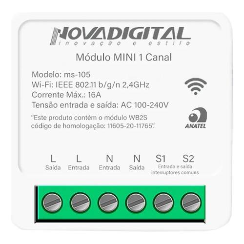 O produto deve ser ligado em neutro + fase 127v ou 220v ou 2 fases 127v + 127v para funcionar. Este equipamento tem como intuito a automação inteligente de interruptores convencionais. Não é dimmer. Este produto somente conecta-se a redes 2.4ghz. Não se conectará a redes 5g. Antes do seu uso, faça o reset do equipamento através do botão físico na parte superior do produto. Verifique os esquemas de ligação nas imagens do anúncio Especificações técnicas: - voltagem de ligação: 100v240v ac bivolt - 50/60hz. - amperagem máxima: 16a. - potência máxima suportada: 1100w em 110v e 2200w em 220v. - padrão wi-fi: 2.4ghz ieee 802.11 b / g / n não conecta-se em redes 5g . - comando de voz compatível com alexa da amazon e google assistant: controle sem as mãos. - compatibilidade: android ou ios. - permite ligar/desligar cargas ac remotamente 1 canal . - não é dimmer. - agendamentos de horários de funcionamento timer via app. - notificações instantâneas via app push . - compartilhamento das funções via app. - fabricado em pc v0 policarbonato antifogo - medidas: 41 x 41 x 20mm 4.1 x 4.1 x 2.0cm - tamanho reduzido. - peso aproximado: 35g. - produto homologado pela anatel: 116052011765. - produto com . - cor: branco. - este produto contém módulo wb2s. - modelo: rele mini smart switch ms-105. - marca: novadigital. Descrição detalhada: ideal para realizar sua automação residencial de maneira fácil e prática. Permite controlar o funcionamento de lâmpadas e alguns equipamentos domésticos através de conexão sem fio wi-fi. Permite o controle de voz através de assistentes virtuais google assistant e alexa da amazon. Além disso, realize configurações através do app smart life, tuya ou novadigital, disponíveis para ios e android. Verifique as especificações técnicas do produto com atenção antes de realizar sua compra. Leia com atenção o manual do produto antes de realizar sua instalação. Conteúdo da embalagem: - 1 wi-fi relé eletrônico inteligente 1 canal 16a novadigital. - 1 manual de instruções em português. Recomendações do fabricante: Requisitos mínimos de rede wi-fi: Rede wi-fi com alto desempenho, escalável, com alta capacidade interna para administração de dispositivos e com boa distribuição do sinal no local. Ideal, tipo mesh, com capacidade para 100 ou mais dispositivos. A não observância desse requisito, poderá acarretar nos seguintes sintomas: Oscilação na conexão do dispositivo, podendo estar off-line inesperadamente temporariamente ou por tempo indeterminado. -falha na resposta aos comandos via aplicativo, assistentes de voz e não execução de rotinas automáticas agendadas. Obs.: os modens/roteadores wi-fi entregues pelas operadoras de telecomunicações, poderão não suportar a utilização deste dispositivo. Os testes de sinal realizados por smartphones, notebooks ou demais dispositivos podem não ser considerados para a realização de testes precisos de alcance, pois possuem chips internos com recursos diferentes, proporcionando maior recepção de sinal wi-fi Para o correto funcionamento deste dispositivo, recomendamos a contratação de uma empresa especializada em redes wi-fi, automação e elétrica. Marca: Não Informado Ean: 79000841710359