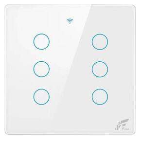 Interruptor Inteligente Smart Touch JWCOM 6 Botões Tuya 4x4 Automatize sua residência com eficiência e praticidadeO Interruptor Inteligente Smart Touch Wi-fi JWCOM 6 Botões é a escolha ideal para quem busca trazer mais conforto e tecnologia para sua casa. Com acabamento em vidro temperado, este interruptor proporciona sofisticação e modernidade ao ambiente. Além disso, seu controle via aplicativo ou por comandos de voz torna a experiência de automação residencial ainda mais prática. Diferenciais:acabamento em vidro temperado para um toque de sofisticação;Controle via aplicativo ou comandos de voz, para maior conveniência;Agendamentos para ligar e desligar automaticamente os dispositivos, auxiliando na economia de energia;Configuração de cenas inteligentes, permitindo acionar vários aparelhos smart simultaneamente;Compatibilidade com assistentes virtuais como Alexa e Google Home;Fácil instalação, sem necessidade de fiação para a configuração de paralelos virtuais. Mais sobre o Produto:Este interruptor inteligente potencializa a automação residencial, permitindo programações avançadas, controle por voz e compartilhamento de dispositivos com toda a família. Sua tecnologia de Wi-fi + RF 433MHz permite a integração com diversos aplicativos, garantindo uma experiência dinâmica e personalizada. Ficha Técnica:Marca: JWCOMModelo: SA-RF468FVoltagem: 90-240V AC, 50-60HzMaterial: Vidro temperado e PC retardante ao fogoBotões: 6Cores: BrancoConexão: Wi-fi + RF 433MHzTemperatura de operação: -15C a 40CMedidas: 120x120x32.8 mmCorrente Máxima: 10A/250VGarantia: 12 meses contra defeitos de fabricaçãoAplicativos Compatíveis: JWCOM, Ekaza, Android, Tuya, Smart Life e NovaDigital.Modernize sua residência com o Interruptor Inteligente Smart Touch Wi-fi JWCOM 6 Botões e desfrute de um ambiente mais tecnológico e confortável. Transforme a forma como interage com sua casa e simplifique sua rotina diária com praticidade e eficiência. Necessário ter ou providenciar a rede Wi-fi 2,4GHz, com alta capacidade interna para administração de dispositivos e com boa distribuição do sinal no local. Com a oscilação na conexão do dispositivo, pode acarretar falha na resposta aos comandos via aplicativo, assistentes de voz e não execução de rotinas automáticas agendadas . Consulte um técnico da sua operadora.