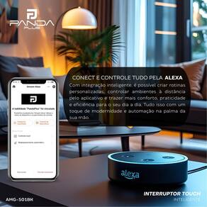 Principais Benefícios: • Controle via App Panda Plus, Tuya e Smart Life (Android 8 Oreo ou Superior/iOS 11.4 ou Superior) • Compatível com Alexa e Google Assistente (comando de voz e criação de cenas) • Design sofisticado com painel de vidro temperado • Instalação padrão em caixa 4x2 • Luz de LED indicadora (acende ao toque) • Função liga/desliga via smartphone, mesmo fora de casa • Programação de horários e automações ___________________________________________________________________________________________________________________________________