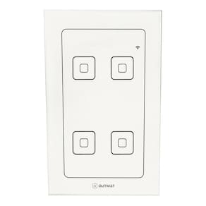 somos a Outmat, uma marca inovadora que cria produtos para facilitar a vida das pessoas. Nossa missão é desenvolver produtos para sua casa com o melhor design e qualidade, oferecendo aos nossos compradores uma grande variedade de produtos com o melhor custo benefício. ----------------------------------------------------------------------------------------------------------------- Descrição do Produto: Com a nova linha de interruptores inteligente Touch WiFi da Outmat você pode controlar todas suas lâmpadas a distância. Você pode utilizar assistentes de voz como Alexa, Google Assistente e Siri para ligar e desligar suas lâmpadas utilizando simples comando de voz. Com um único aplicativo você tem total controle sobre suas lâmpadas, podendo criar ambientes para facilitar navegação no aplicativo. --------------------------------------------------------------------------------------------------------------- Características: Touch screen sensível ao toque com acendimento do led na cor azul; Controle por aplicativo remotamente através de seu smartphone ou tablet. Recomendamos a utilização do Smart Life; Controle por comando de voz, utilizando o Alexa, Google Assistente e Siri; Programe cronômetros de contagem regressiva, dias e horários para ligar e desligar; Status de acionamento no aplicativo saiba se ficou ligado ou desligado sua iluminação de onde estiver ; --------------------------------------------------------------------------------------------------------------- Especificações: Modelo: OMI40B; Cor: Branco; Quantidade de Botões: 4; Voltagem: Bivolt 100 a 240 Vac ; Corrente Max: 2A por saída; Potência Max: 500W por saída; Padrão Wi-Fi: 802.11 b/g/n; Segurança Wi-Fi: WPA-PSK/WPA2-PSK- WiFi 2.4ghz; Dimensões: 72 x 118 x 39mm; Padrão das caixinhas: 4x2; ----------------------------------------------------------------------------------------------------------------- Conteúdo: 1x Outmat; 1x Manual em Português; 1x Conjunto de parafusos; ----------------------------------------------------------------------------------------------------------------- Informações Importantes: O dispositivo é acionado utilizando sua rede de internet wi-fi sinal 2.4g, ou seja, o sinal deve ser de boa qualidade para que o mesmo funcione de forma eficiente. A instalação é simples, porém, é necessário alimentar o dispositivo com o cabo neutro para ligações em 127v ou fase + fase para as ligações em 220v, caso contrário o dispositivo não funciona. Caso seja necessário contrate um técnico especializado. O pode apresentar falhas ficar piscando ao ser utilizados em circuitos com a potência muito baixa inferior a 4w. Favor atentar-se a aplicação do mesmo antes da compra. Marca: Outmat Ean: 7893783001042