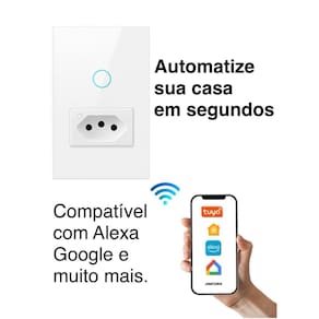 Modernize sua casa ou comércio com praticidade e tecnologia. Este modelo combina interruptor touch com uma tomada integrada, permitindo controle total da iluminação pelo celular ou comando de voz com Alexa ou Google Assistente.