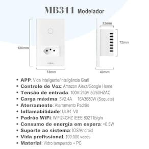 Modelo: [ MB311B] Interruptor wifi com 1 botão e 1 tomada