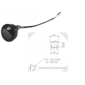 Amperagem: 2A Corrente: 250V Cor: Preto Composição: Materiais plásticos isolantes (termoplásticos de engenharia) e ligas metálicas condutoras Diâmetro do furo: 22mm Altura embutida: 13,6mm Diâmetro externo: 25mm Comprimento do cabo: 150mm