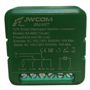 Relé Inteligente Wifi 1 Canal JWCOM Medidor Energia Relé Mini Inteligente Wi-fi 1 Canal JWCOM Medidor de Energia A solução completa para automatização residencial, controle inteligente de energia e monitoramento do consumo elétrico Procurando uma maneira inteligente de controlar a iluminação e aparelhos elétricos da sua casa Apresentamos o Relé Mini Inteligente Wi-fi 1 Canal da JWCOM. Com dimensões compactas 42x42x20 mm , esse é a solução perfeita para a automação residencial, permitindo ligar e desligar cargas AC localmente e remotamente. Seu design em ABS branco garante um acabamento moderno e discreto para sua casa. Diferenciais: Compatível com assistentes de voz Google Home e Amazon Alexa Capacidade para 16A e potência máxima de aproximadamente 2200W Controle remoto via aplicativos como JWCOM Smart, Ekaza, Tuya, Smart Life e NovaDigital Funções avançadas como criação de cenas, programação de horários e temporizadores Monitoramento do consumo de energia em tempo real Sensor integrado de temperatura e umidade para monitoramento ambiental Suporta instalação em caixas de interruptores padrão e instalações Three Way Mais sobre o Produto: O Relé Mini Inteligente Wi-fi 1 Canal da JWCOM permite uma série de funções através de seu aplicativo, como controle remoto, programação de horários, temporizadores e monitoramento em tempo real do estado ligado/desligado, incluindo o monitoramento do consumo de energia. Além disso, é possível compartilhar o controle com múltiplos usuários, tornando a experiência ainda mais completa e integrada. Dicas de Uso: Ficha Técnica: Marca: JWCOM Cor: Branco Dimensões: 42 mm x 42 mm x 20 mm Peso: 50g Corrente Máxima: 16A Potência Máxima: Aproximadamente 2200W Wi-fi: IEEE 802.11b/g/n 2,4 GHz Compatibilidade com Assistentes de Voz: Amazon Alexa, Google Home Modo de Conexão: Wi-Fi 2,4 GHz Tensão de Entrada: AC 100-240V 50/60Hz Tensão de Saída: AC 100-240V 50/60Hz : 12 meses contra defeitos de fabricação Marca: Não Informado