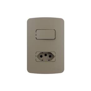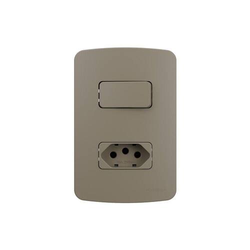 Interruptor Simples 10A e Tomada 2P+T 20A MarGirius B3 Colors com Placa 4x2 Argila