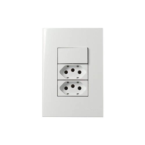 Interruptor Simples 10A e Tomada Dupla 2P+T 20A MarGirius Sleek com Placa 4x2 Branco