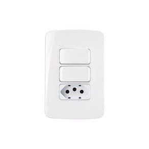 Interruptor Simples Duplo 10A e Tomada 2P+T 20A MarGirius B3 com Placa 4x2 Branco