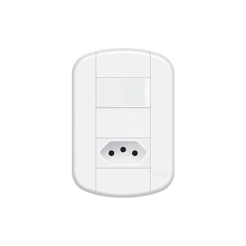 Interruptor Simples e Tomada 2P+T 10A Fame Blanc+ Distanciados com Placa 4x2 Branco -