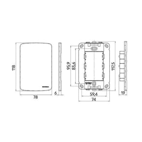 Simples Duplo e MarGirius B3 10A com Placa 4x2 Branco Características Gerais do Produto: Dimensões AxLxP mm : Placa: 118x78x6 - Suporte: 117,5x74x19 Quantidade de Teclas: 3 Material: Placa em ABS com aditivo contra raio-uv e Suporte em PA6 30% fibra de vidro Acabamento: Alto Brilho Acompanha Placa: Sim Acompanha Suporte: Sim Tamanho: 4x2 Corrente : 10A Acompanha Módulo: Sim Tipo: Simples Duplo + Linha: B3 Quantidade de Módulos: 3 Acompanha o produto: 1 Simples Duplo e MarGirius B3 com Placa e Suporte 4x2 : 5 anos junto ao fabricante Marca: Não Informado